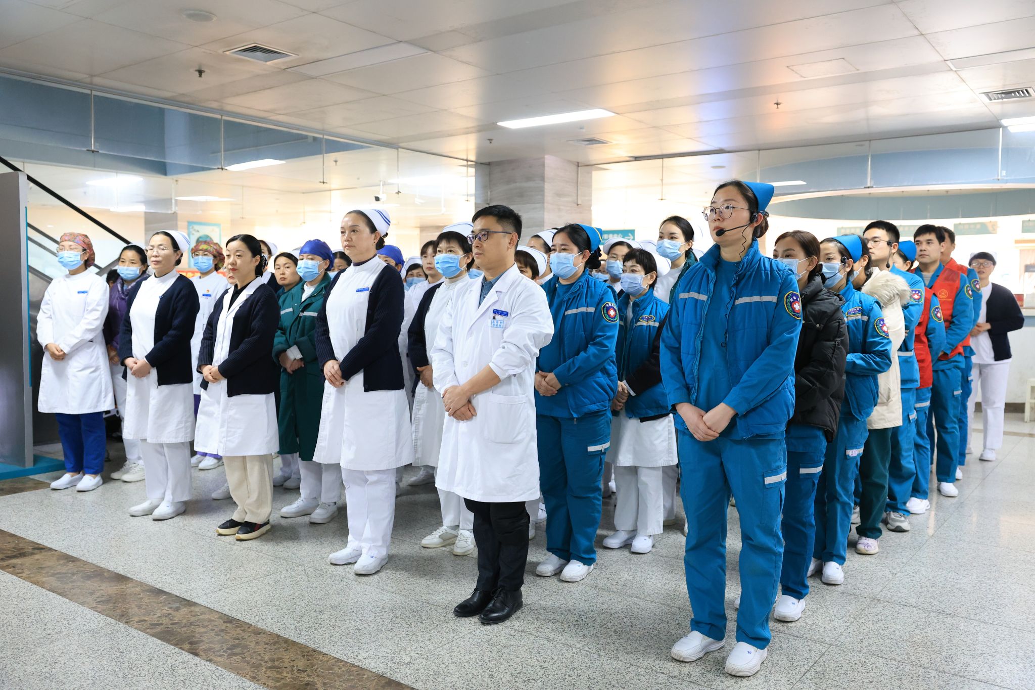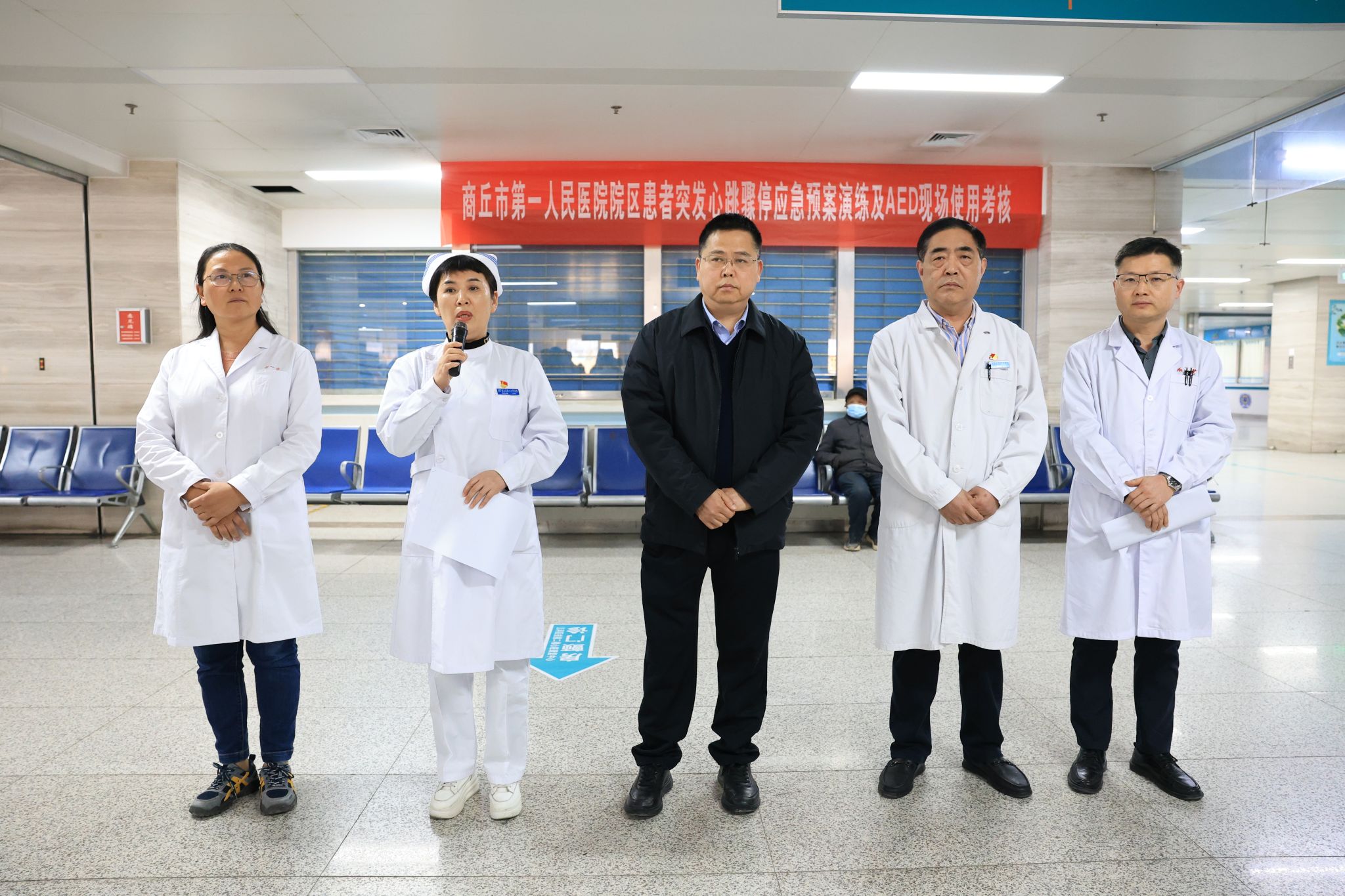 近日,我院在儿科医技楼一楼大厅组织开展“院区患者突发心跳骤停应急预案演练、院内RRT小组启动及AED现场使用”全流程综合演练。副院长许春进、各总支书记全程观摩指导,200余名医务人员(含各科室护士长、楼区应急小组成员)参与演练,50余名就诊患者及家属现场观看。