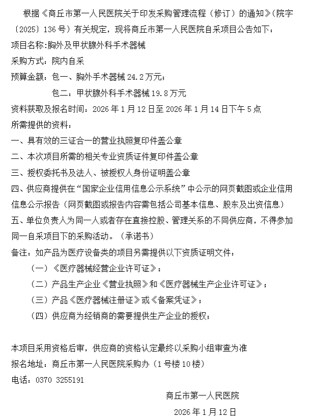 商丘市第一人民医院自采公告(2026-6)