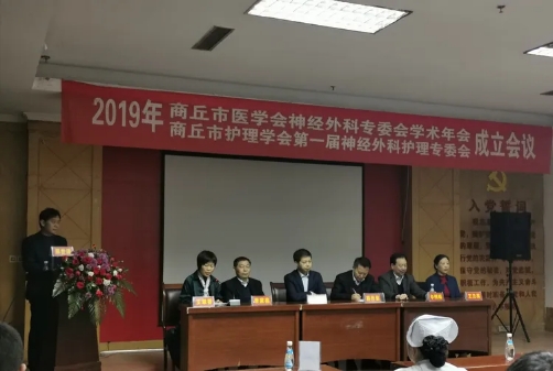 由商丘市医学会主办、我院承办的2019年商丘市医学会神经外科专委会学术年会暨商丘市护理学会第一届神经外科护理专委会成立大会于11月23日在我院门诊楼十楼会议室举行。我院党委书记、院长韩传恩,郑州大学第五附属医院党委书记、教授、博士生导师王新军先后致辞。会议由商丘市医学会会长邵世清主持。来自全市各级医疗机构神经外科专业的医护人员代表200余人参加了会议。