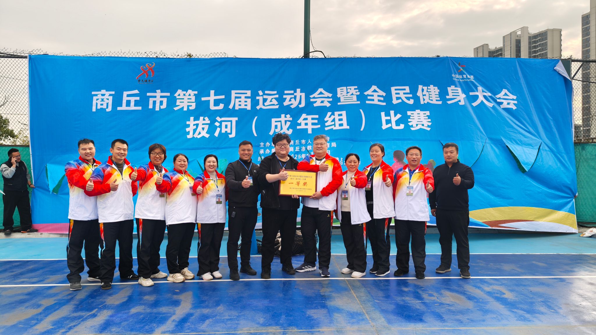 11月11日,由商丘市人民政府主办、商丘市教育体育局承办的商丘市第七届运动会暨全民健身大会拔河比赛(成年组),在商丘市奥园网球培训中心圆满落幕。我院派出12人代表队参赛,最终凭借出色表现斩获一等奖,为医院赢得荣誉。