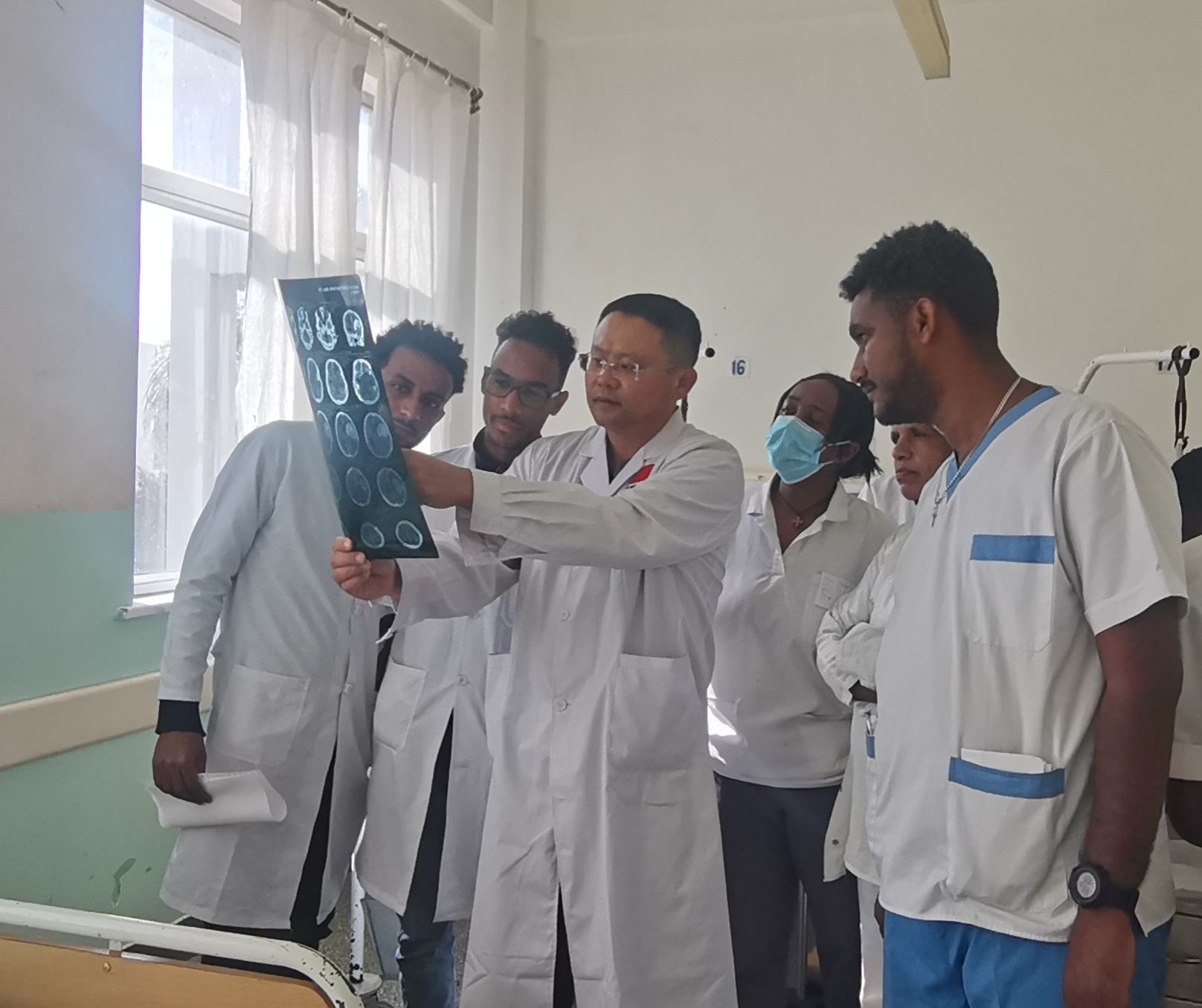 事情发生在厄立特里亚首都阿斯马拉的奥罗特医院。当日,一名20岁的当地青年突发剧烈头痛后陷入昏迷,被紧急送往医院就诊,值班医生拨通了中国医疗队神经外科医生李建东的电话。接到电话后,李建东立即赶往医院紧急会诊,患者已陷入中度昏迷,右侧瞳孔散大固定对光反射消失,头颅CT提示右侧颞顶部大量脑出血,可发展为脑疝,非手术治疗将危及生命。