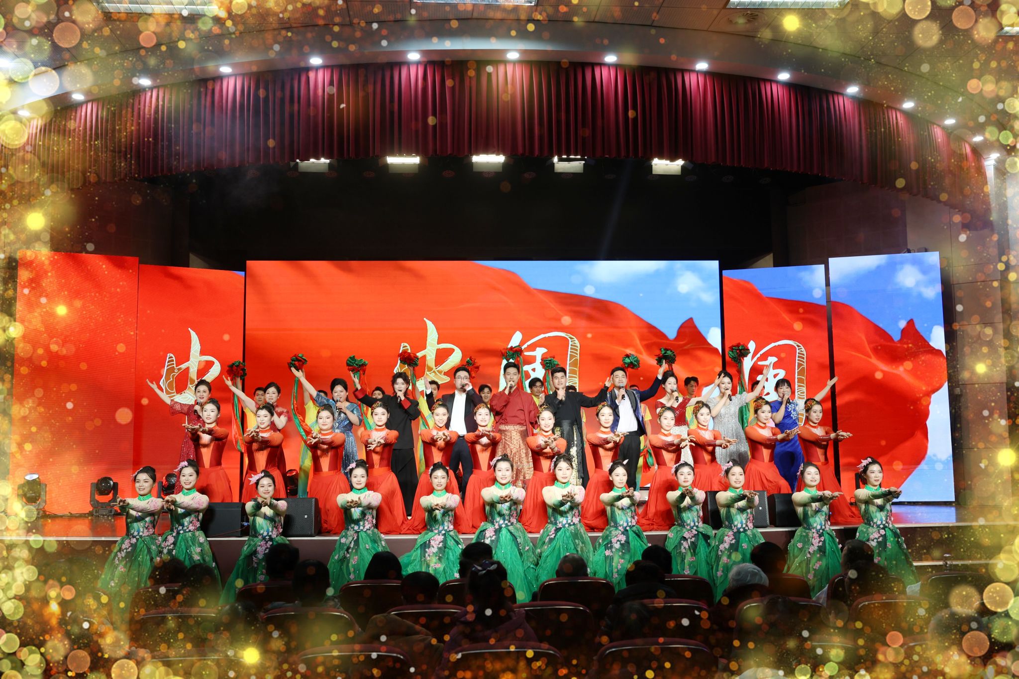 晚会在大气磅礴的歌伴舞《中国》中圆满落幕。演出结束后,院领导走上舞台,与全体演职人员亲切握手、合影留念,定格美好瞬间。本次晚会同步开启网络直播,累计7万余人次在线观看点赞,线上线下同频共振、共庆佳节。