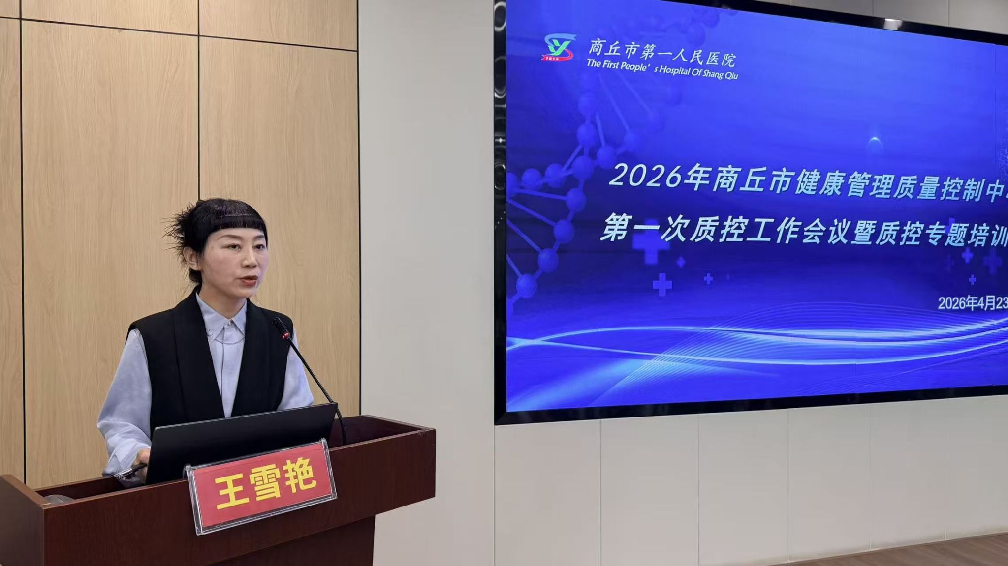 4月23日,商丘市健康管理质量控制中心2026年第一次质控工作会议暨专题培训会在我院顺利召开。我院党委委员、副院长许春进出席会议并讲话。会议由商丘市健康管理质量控制中心主任委员、我院体检中心主任王雪艳主持。全市各级医疗机构健康管理专家及业务骨干共50余人参会。