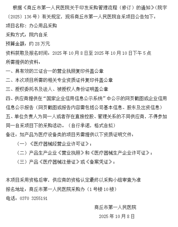 商丘市第一人民医院自采公告(2025-71)