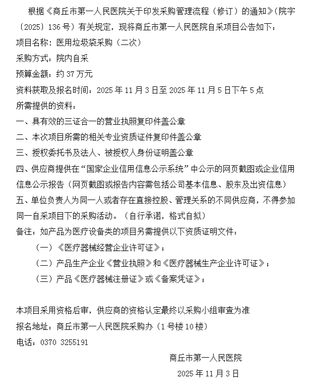 商丘市第一人民医院自采公告(2025-71)二次