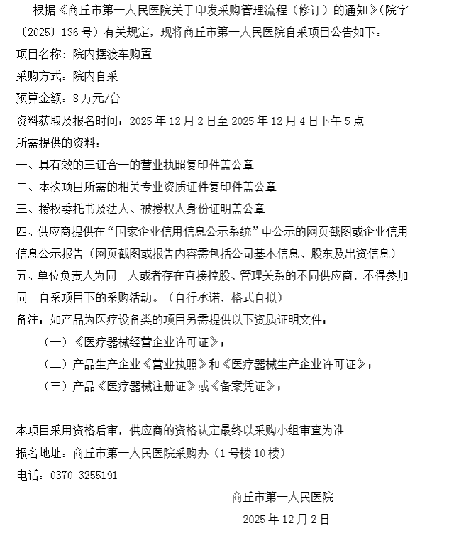 商丘市第一人民医院自采公告(2025-81)