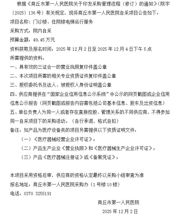 商丘市第一人民医院自采公告(2025-80)