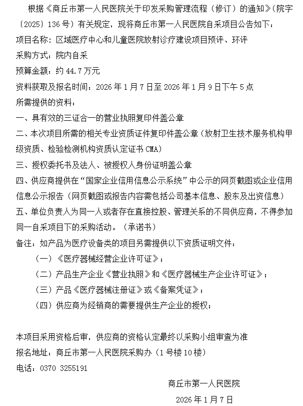 商丘市第一人民医院自采公告(2026-01)