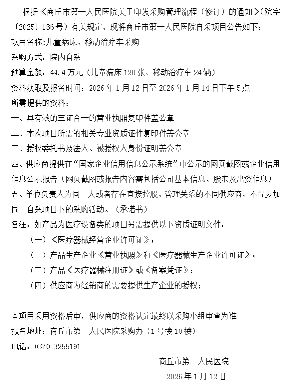 商丘市第一人民医院自采公告(2026-7)
