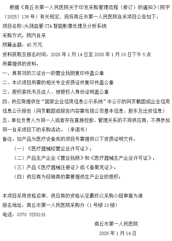 商丘市第一人民医院自采公告(2026-9)