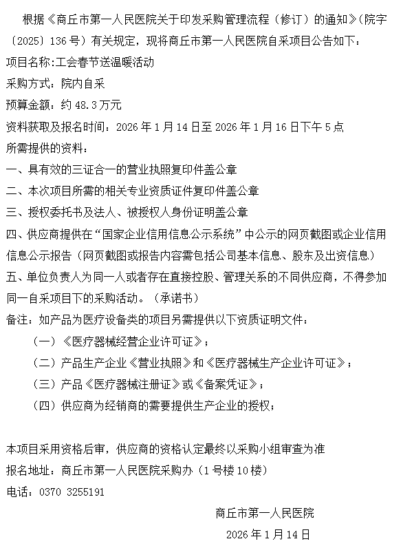 商丘市第一人民医院自采公告(2026-8)