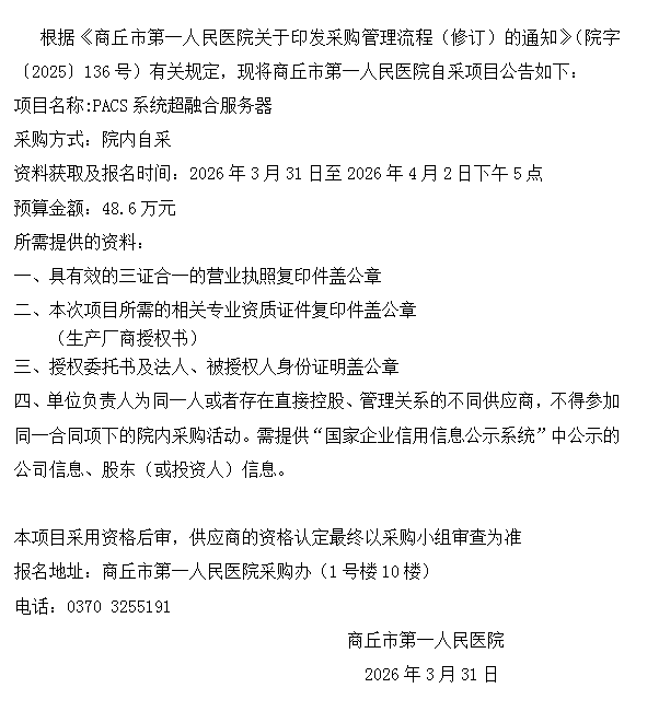 商丘市第一人民医院自采公告(2026-24)