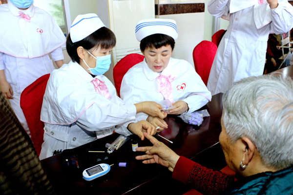 义诊现场,我院医务人员不仅耐心认真地解答老人们关于常见病、多发病的预防诊治问题,指导老人们如何正确用药、合理安排饮食等,还为他们测量血压、血糖,提供专业细致的诊疗服务,对老年人的身体状况进行全面的检查和评估,给出有针对性的诊疗方案,老人们感受到了家人般的关怀,脸上都洋溢着幸福的笑容。同时,来自我院伤口造口失禁学组的南丁格尔志愿者服务队为那些行动不便、卧床老人进行了床旁气管套管、压力性损伤和伤口造口护理等专业护理服务。志愿者服务队还在现场为老年公寓的护理员进行了老年护理专业知识和技能培训。