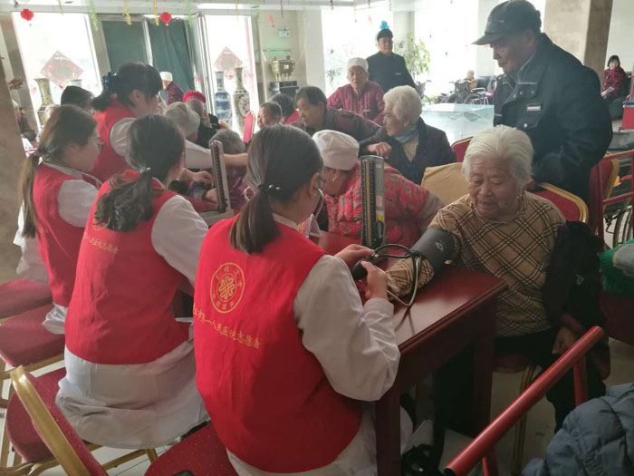 3月3日上午,我院青年志愿者医疗服务队身穿红马甲,精神饱满的来到商丘市星光老年之家,为100多位老人量血压、测脉搏,详细了解每位老人的生活、身体情况,对老人关心的问题进行耐心的解答,并指导老人健康生活。青年志愿者的贴心关怀,使老年人感受到了温暖幸福的笑容洋溢在每一位老人的脸上。