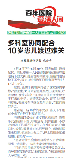 忽然,她的手机响声打破了这难得的宁静:“曹医生,35床术后患儿突然出现烦躁、呼吸急促,快来看看!”这是病房值班医生倪天宇打来的电话。病情就是命令,顾不上劳累与疲惫,曹嵘没有丝毫犹豫与迟疑,立即向病房奔去。