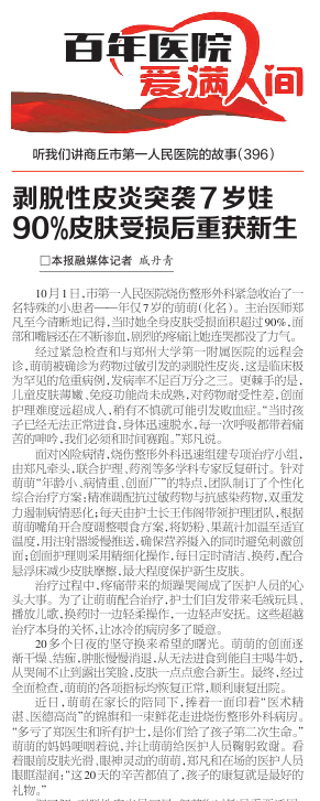 10月1日,市第一人民医院烧伤整形外科紧急收治了一名特殊的小患者——年仅7岁的萌萌(化名)。主治医师郑凡至今清晰地记得,当时她全身皮肤受损面积超过90%,面部和嘴唇还在不断渗血,剧烈的疼痛让她连哭都没了力气。