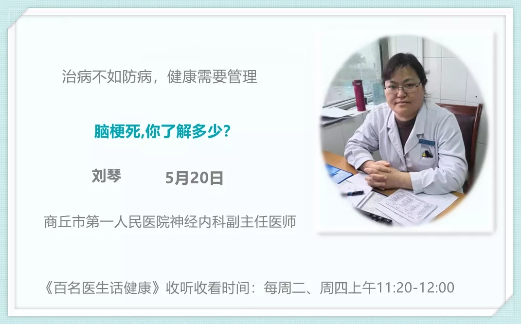 防治高血压:高血压是心脑血管疾病最重要的危险因素,是脑卒中的独立危险因素,血压越高卒中发病风险越高,控制高血压是预防卒中发生和发展的核心环节。