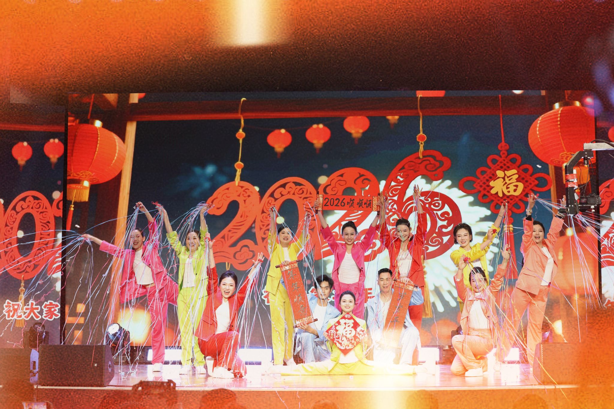 晚会在大气磅礴的歌伴舞《中国》中圆满落幕。演出结束后,院领导走上舞台,与全体演职人员亲切握手、合影留念,定格美好瞬间。本次晚会同步开启网络直播,累计7万余人次在线观看点赞,线上线下同频共振、共庆佳节。