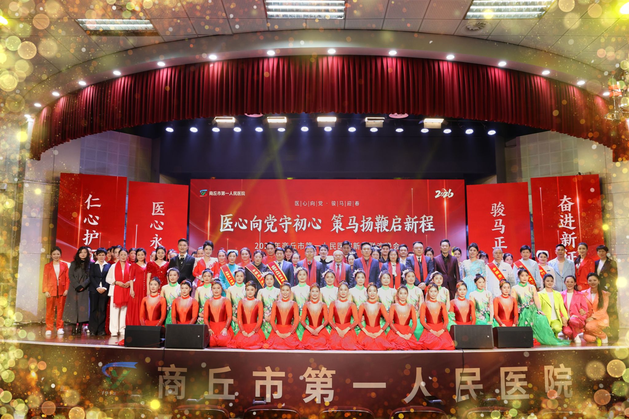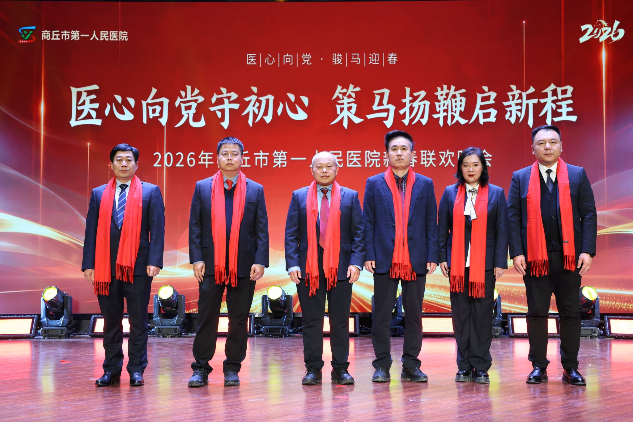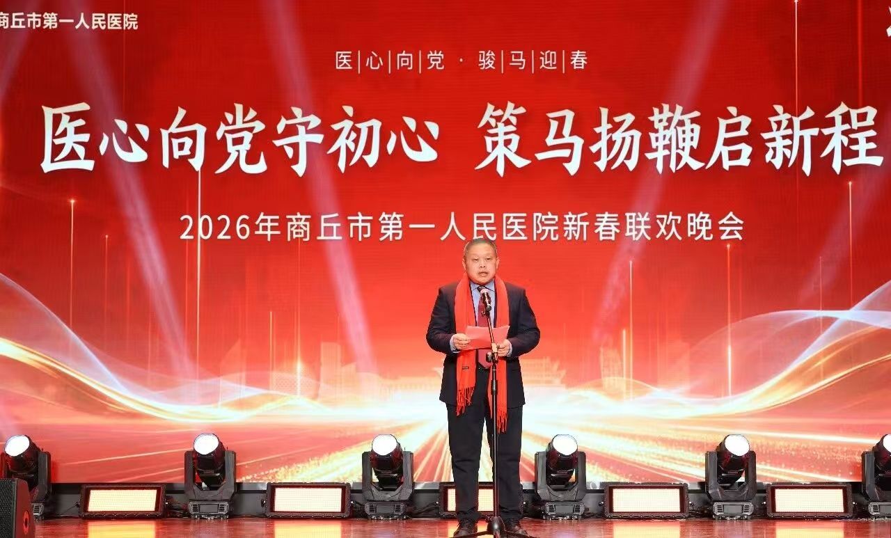 金鼓齐鸣辞旧岁,欢歌笑语迎新春。2月6日18时30分,我院门诊楼五楼大礼堂灯火璀璨、暖意融融,隆重举行以“医心向党守初心 策马扬鞭启新程”为主题的2026年春节联欢晚会。党委书记、院长王玉栋出席并致辞,院领导刘世界、许春进、赵梅、陈坤峰、王博、临床一线职工、离退休老同志代表及患者家属代表等500余人欢聚一堂,共贺新春、共话发展、共谱新篇。