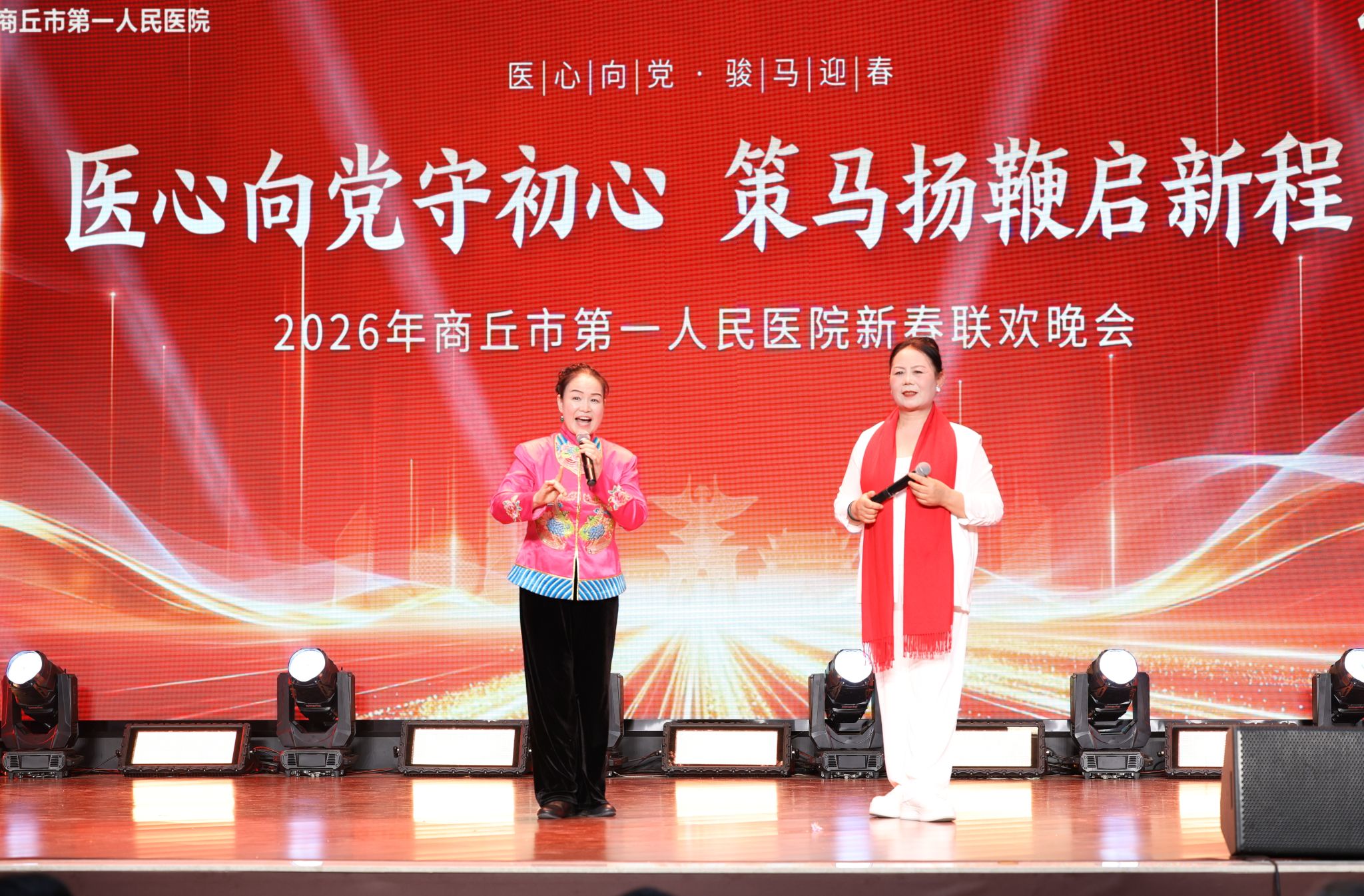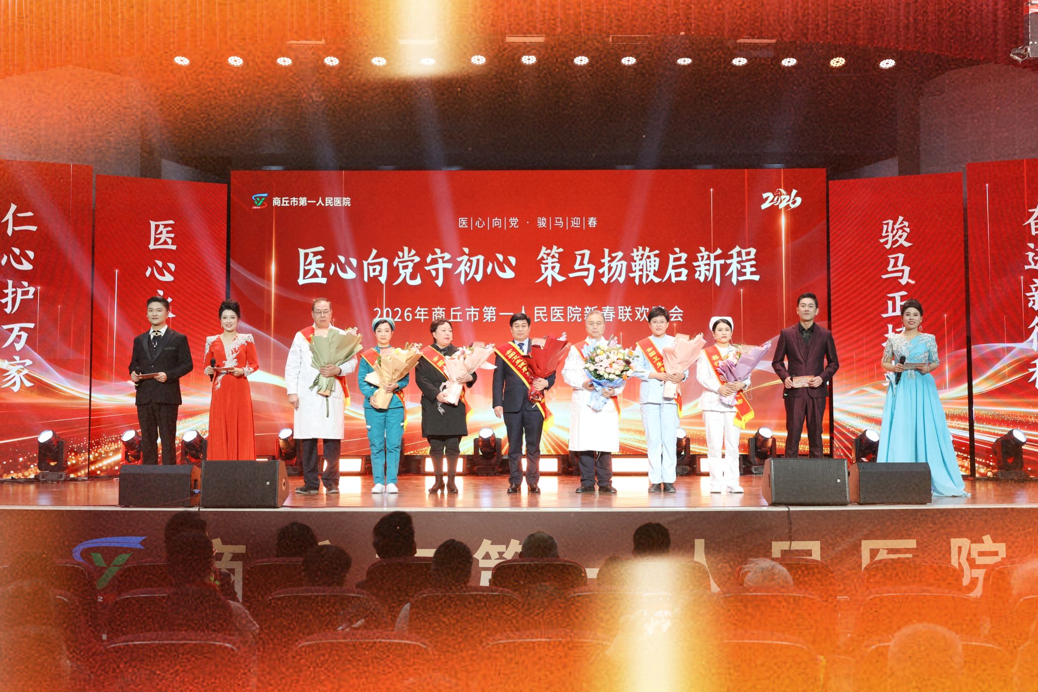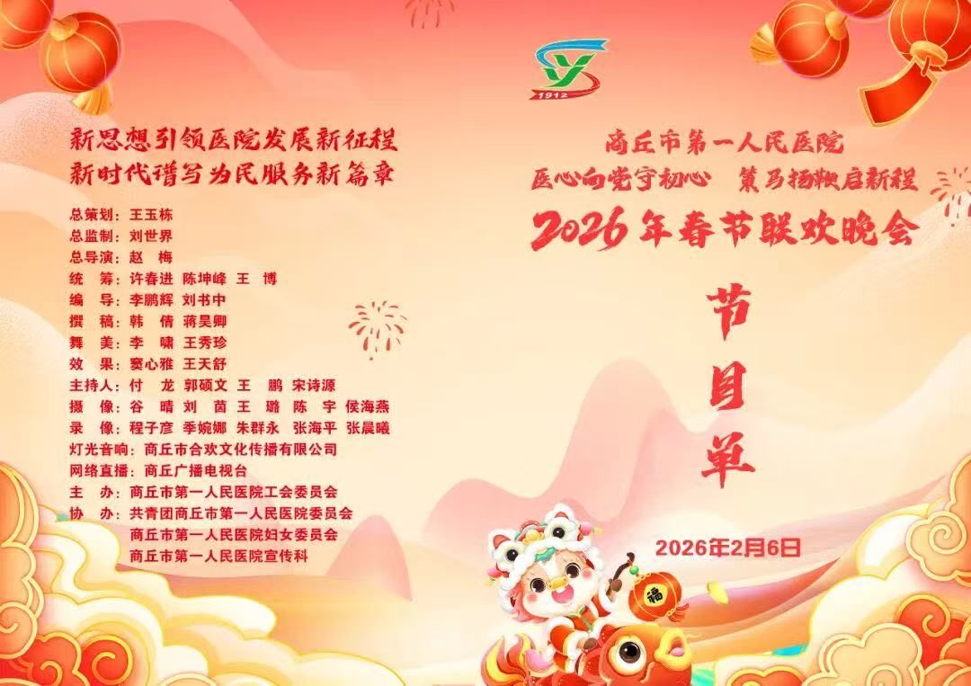 金鼓齐鸣辞旧岁,欢歌笑语迎新春。2月6日18时30分,我院门诊楼五楼大礼堂灯火璀璨、暖意融融,隆重举行以“医心向党守初心 策马扬鞭启新程”为主题的2026年春节联欢晚会。党委书记、院长王玉栋出席并致辞,院领导刘世界、许春进、赵梅、陈坤峰、王博、临床一线职工、离退休老同志代表及患者家属代表等500余人欢聚一堂,共贺新春、共话发展、共谱新篇。