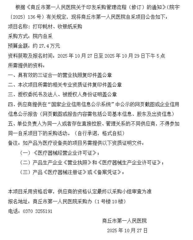 商丘市第一人民医院自采公告(2025-75)