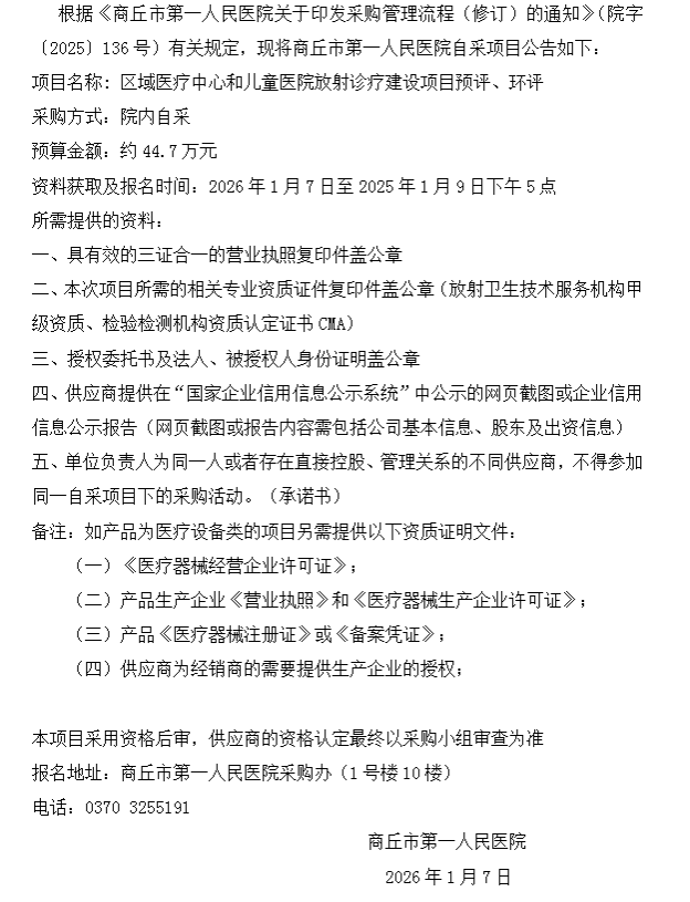 商丘市第一人民医院自采公告(2026-01)