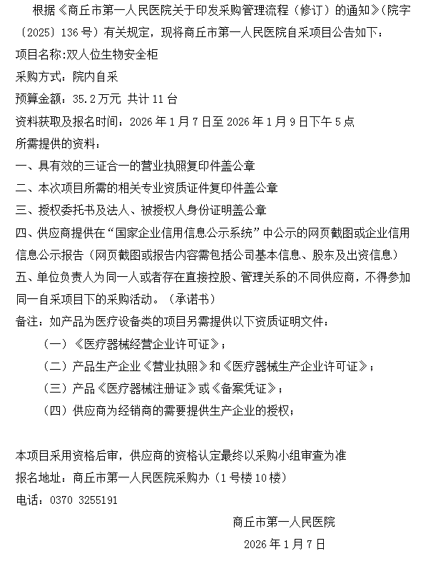 商丘市第一人民医院自采公告(2026-5 )