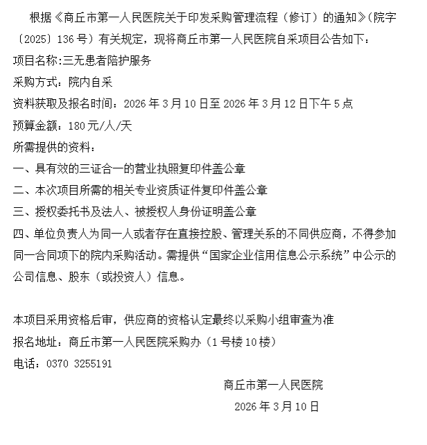 商丘市第一人民医院自采公告(2026-18)