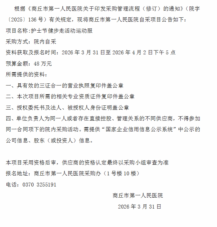 商丘市第一人民医院自采公告(2026-24)